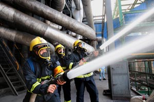公司黨委書記、董事長張衛(wèi)民,黨委副書記、總經(jīng)理李清菊,副總經(jīng)理焦旺盛參加演練并提要求。健康安全環(huán)保部消防隊、熱電車間抽調(diào)精兵強將參加這次突發(fā)事件應急預案實戰(zhàn)演練。